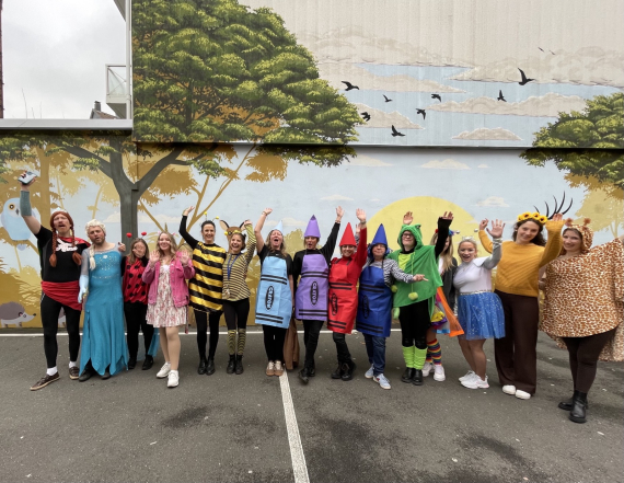 Auch das Kollegium ließ sich von der Karnevalsfreude anstecken und feierte kreativ verkleidet mit den Kindern.