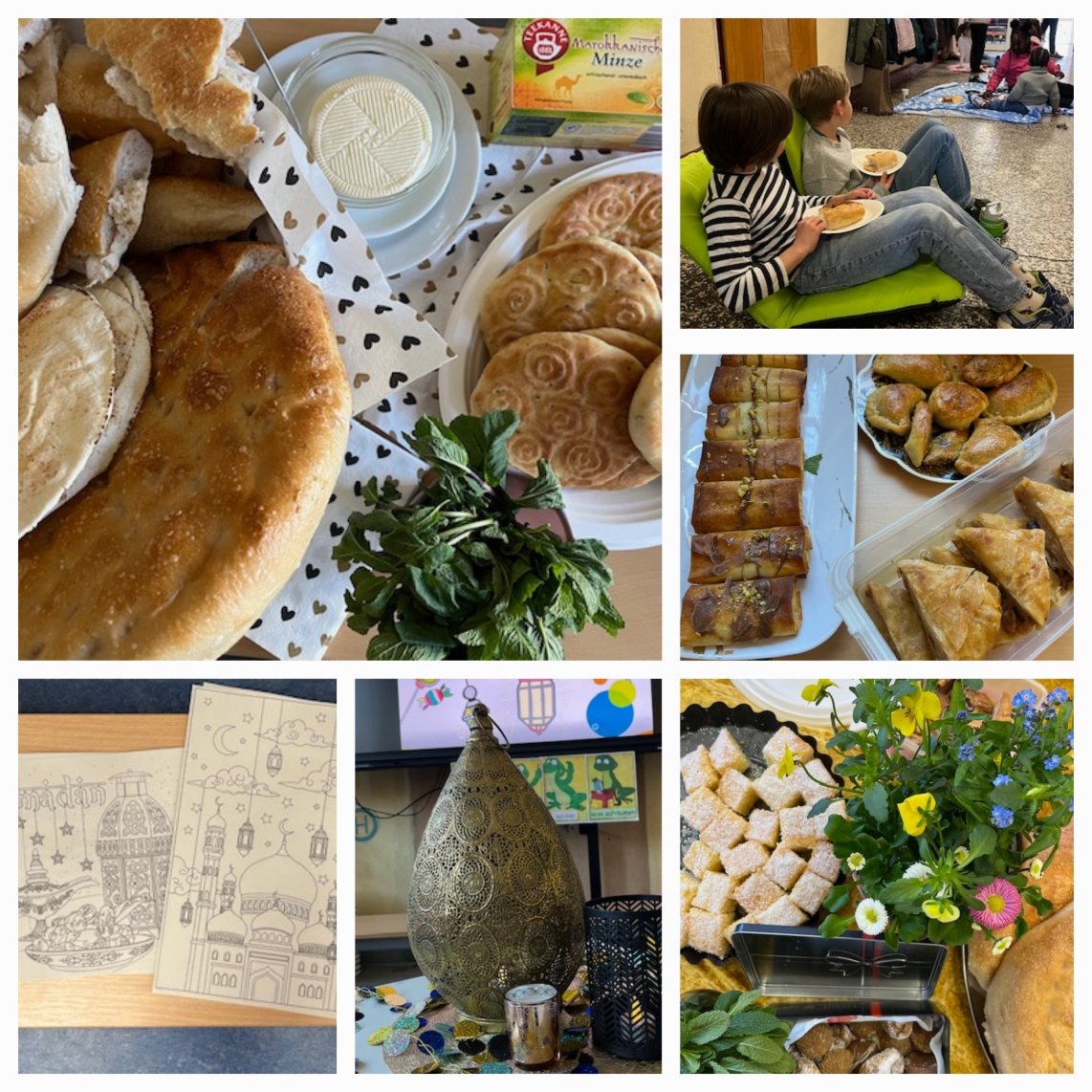 In der letzten Woche vor den Osterferien haben wir am Montag (23.03.2026) an unserer Grundschule das Ende des Ramadans gefeiert. In der 3. Stunde gab es ein gemeinsames Frühstück mit frischem Fladenbrot, duftendem Minztee und leckerem Schafkäse. Viele Eltern haben das Buffet mit selbstgebackenen Plätzchen und herzhaften Kleinigkeiten, wie zum Beispiel Falafeln, bereichert.